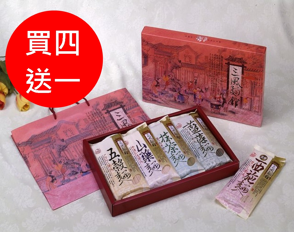 健康送禮首選-【三風麵館養生精緻禮盒買4送1優惠組】