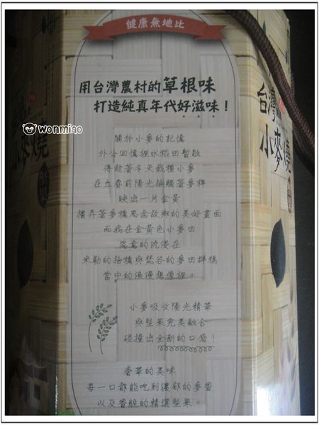 台灣小麥燒顧名思義是由小麥為主原料製作而成的零嘴, 為了不使口味及口感太單調,
