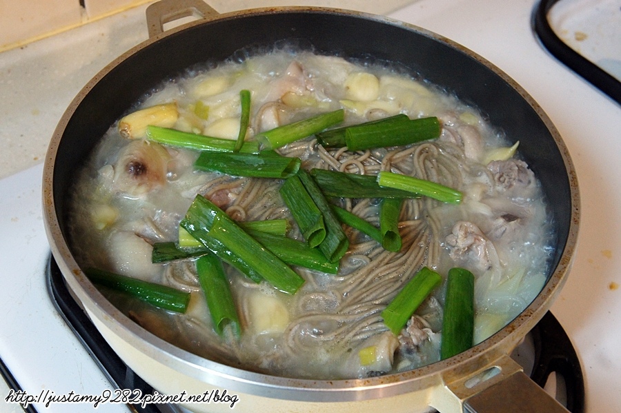 蓋上鍋蓋慢悶~ 待麵條熟成後灑上蔥綠~ 美味又好吃的韓式一隻雞湯麵完成!!!