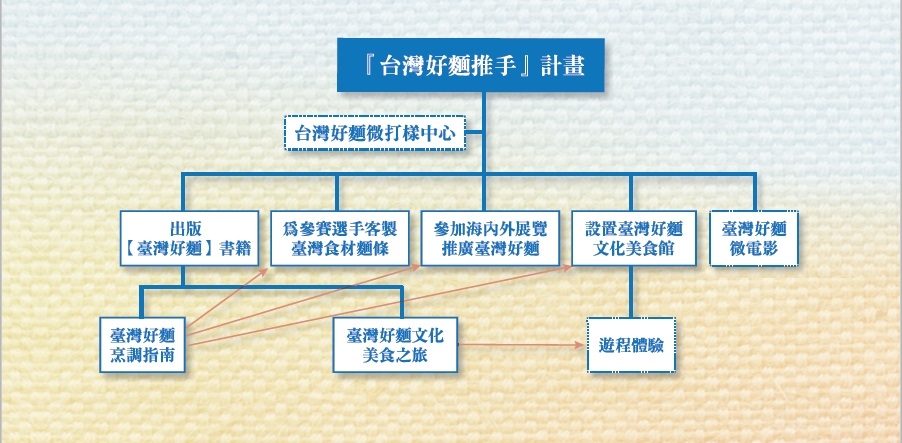 因此我們必須以滿足消費者的需求為導向,在常態消費迴轉的麵食常民文化中,置入價值化的文化導覽與經驗行銷推廣,讓消費者買到的不再只是臺灣農產麵條,而是日常生活中的文化麵食!來創造出臺灣農產品的市場新應用商機。
