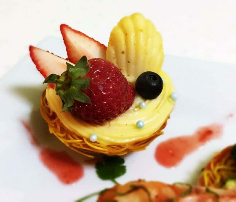 薑黃麵線料理食譜-薑黃麵線卡士達草莓塔