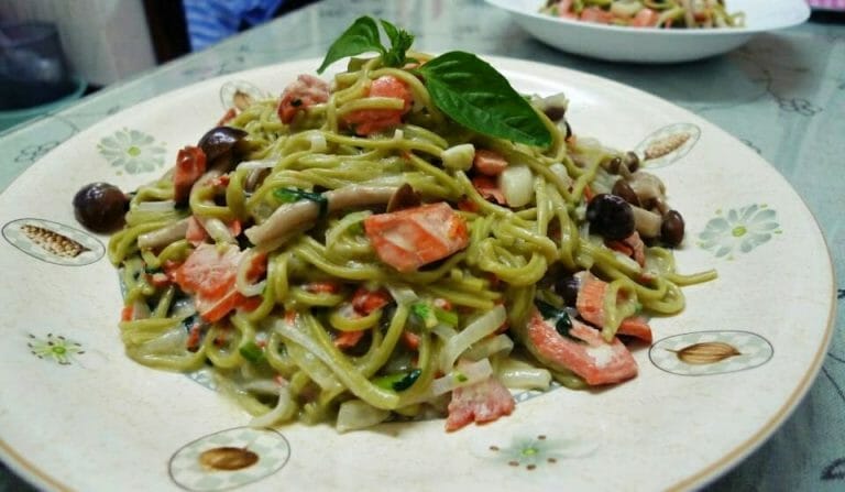 抹茶麵料理食譜-白醬鮭魚抹茶麵