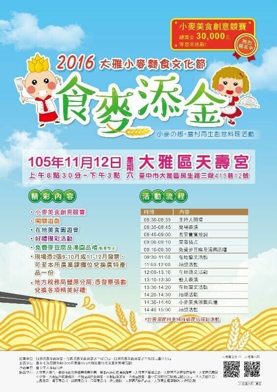 2016大雅小麥麵食文化節活動流程 大雅小麥…