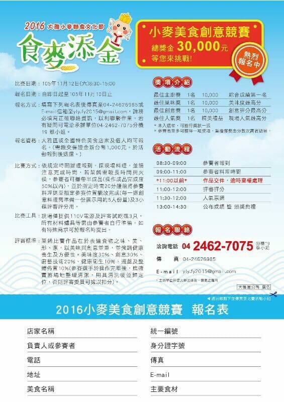 2016小麥美食創意競賽活動辦法 2016小麥美…