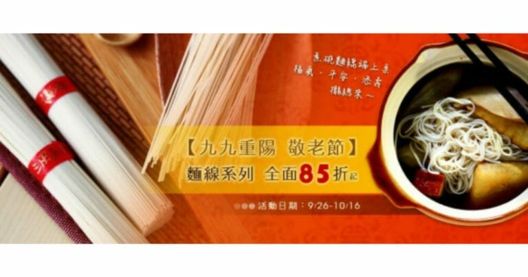 歡慶九九重陽敬老節 麵線系列全面85折起 …
