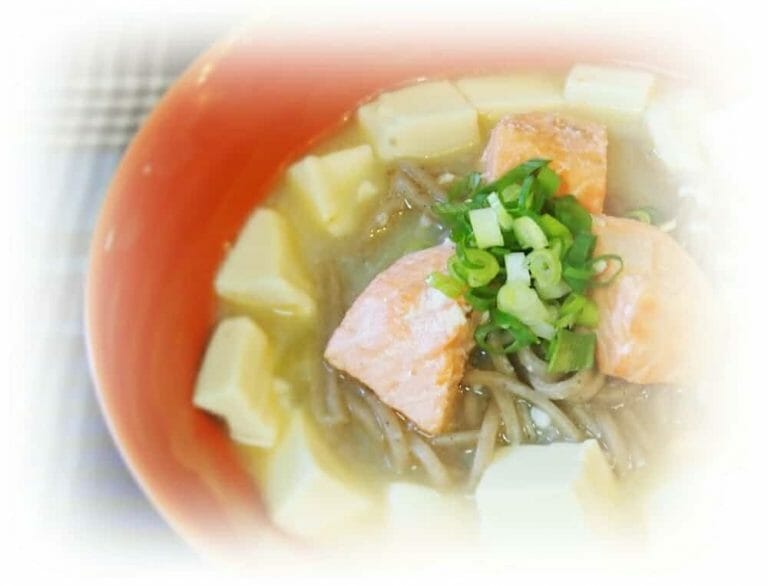 香蕉麵料理食譜-味噌豆腐鮭魚湯麵