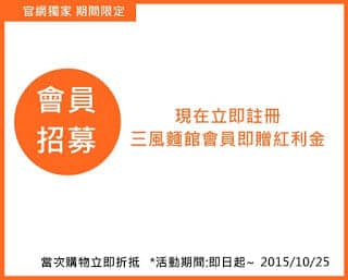 三風麵館會員招募中 現在立即註冊三風麵館…